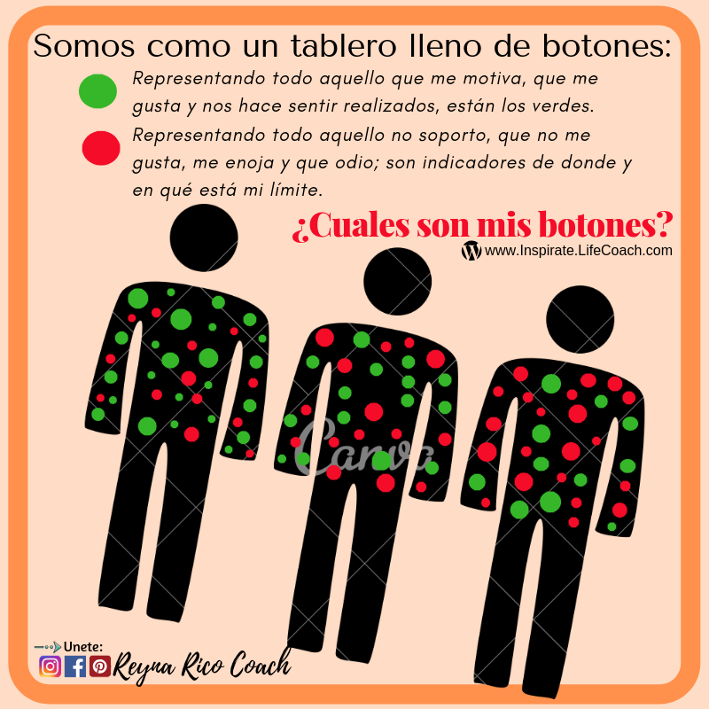 En ingles hay una frase que dice: ´´ You are pressing my buttons´´ quiere decir: ´´Estas presionando mis botones´´ ¿Cuantas veces no nos encontramos en situaciones donde nos sentimos así? Donde sentimos que hay alguien o una situación que pareciera estar tocando ciertas partes en mi físicamente que detonan mis emociones ya sea de enojo (muy común mente) o de alegría.