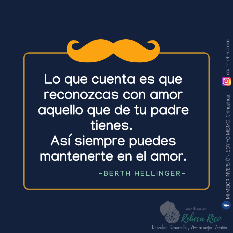 Para mi; eso es ser un Papá, sin hacer a un lado el lazo sanguíneo, lo que hace a un Padre es la presencia en la vida de un pequeño, el que lo alimenta, lo viste, le dice te quiero y creo que por eso es que el apellido paterno va antes del materno, ya que con Papá es con quién encontramos nuestra identidad: Reyna Rico la hija de Francisco Martín Rico el de los Ricos Tacos de la 24. Del padre tomamos la identidad de quién somos y el como nos presentamos en la vida. Hay padres que eligen tomar otro camino y se les guarda el secreto a los hijos intentando protegerlos, pero el no saber hace mas daño, la verdad siempre trae libertad. A ello la importancia de hablar con la verdad a nuestros hijos y decir: «Tienes un padre, que eligió no estar presente.´´ Abraham Maslow nos enseña dentro de su pirámide de las necesidades psicoafectivas, como dentro de la seguridad esta la familia. Por ello es indispensable que el pequeño sepa que tiene un padre, aunque este elija no hacerse presente.