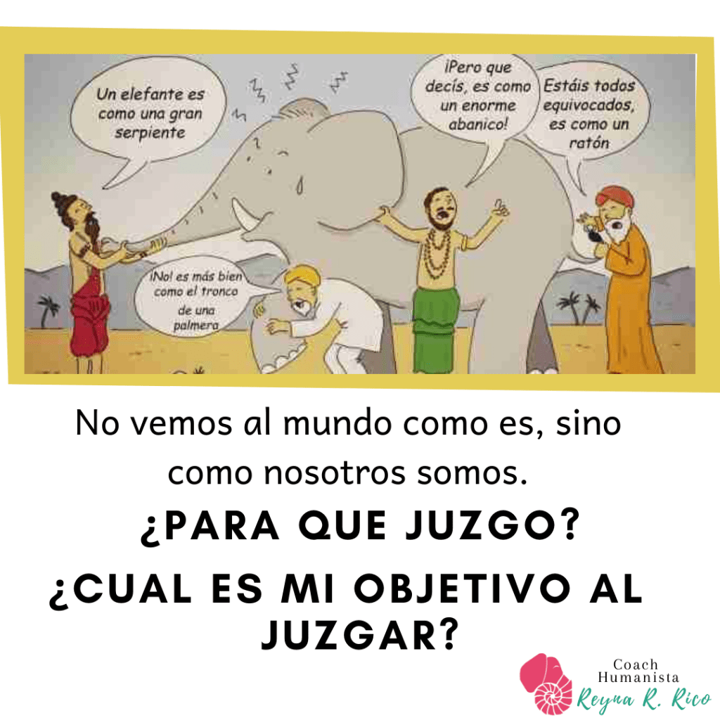 Con esto no estoy diciendo que salgas a la calle y que no respetes las medidas sanitarias que ya conocemos todos tenemos la responsabilidad de hacer lo mejor posible para estar y mantenernos sanos y a nuestras familias. Solo no juzgues, no sabes cual parte del elefante está tocando esa persona. Tu Paz mental es tu responsabilidad. Te Libera de esa carga auto impuesta y te da esa paz mental. Aunque el juicio es parte de nuestra naturaleza humana,d también es una elección de responsabilidad.